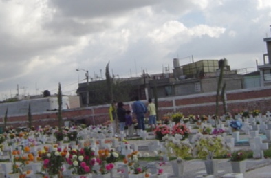 Nada se escucha mas que sólo el sonido del viento entre las ramas de los árboles, unos cuantos pajarillos que armonizan la estancia de cuerpos sin vida, de repente te encuentras caminado entre lapidas buscando el nombre conocido para ir a dejarle flores, miras a la derecha y ves tumbas con flores nuevas que despiden un agradable aroma pero a su vez también percibes el pestilente aroma a flores podridas en tumbas que nadie visita mas, volteas a la izquierda en donde ves tumbas sucias, olvidadas, llenas de tierra con pasto seco e insectos rondándoles.