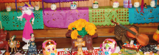 El día de muertos es una tradición mexicana heredada de los rituales a la muerte practicados por nuestros antepasados. Los lugares empleados para este fin eran llamados cementerios o teocalis. La tradición cuenta que durante los primeros 2 días de Noviembre, las almas de las personas fallecidas regresan a casa para convivir con los familiares vivos y compartir los alimentos que estos ofrecen en altares hechos para la ocasión. Este ritual incluye las típicas flores amarillas, conocidas como flor de cempasúchil, las ricas calaveras de azúcar o chocolate y el famoso pan de muerto.